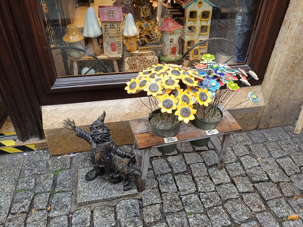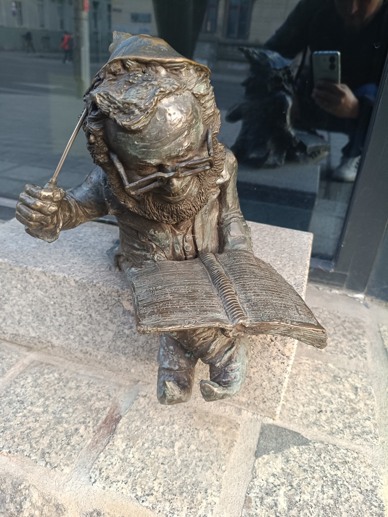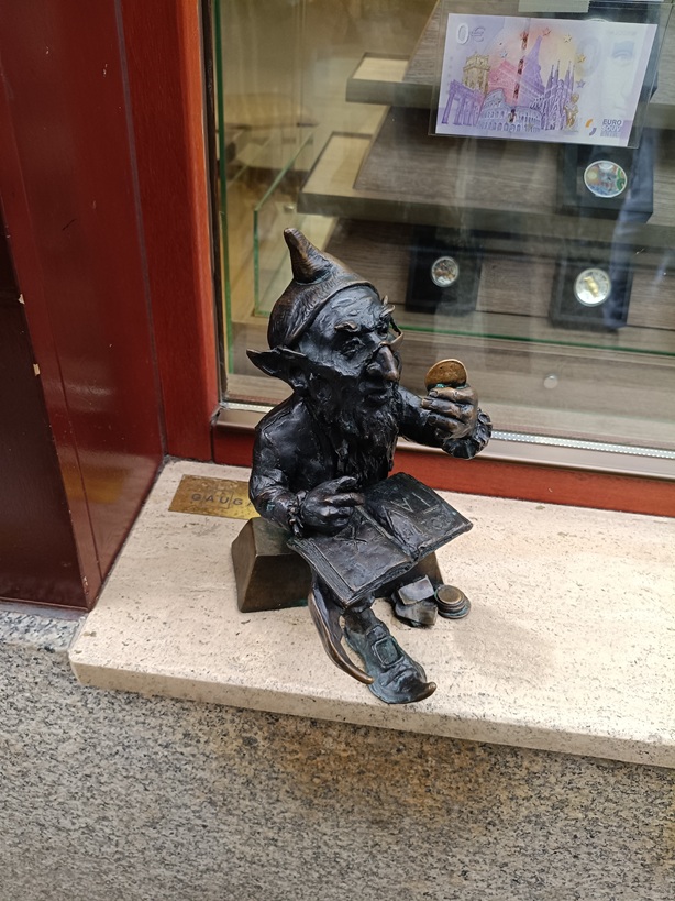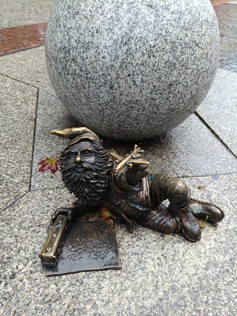 Another cool thing is the dwarfs. There are a lot of small bronze figures scattered around the city. As far as I understand, the first few dwarfs were installed by the city, but then they became so popular that business owners started adding their own themed ones: